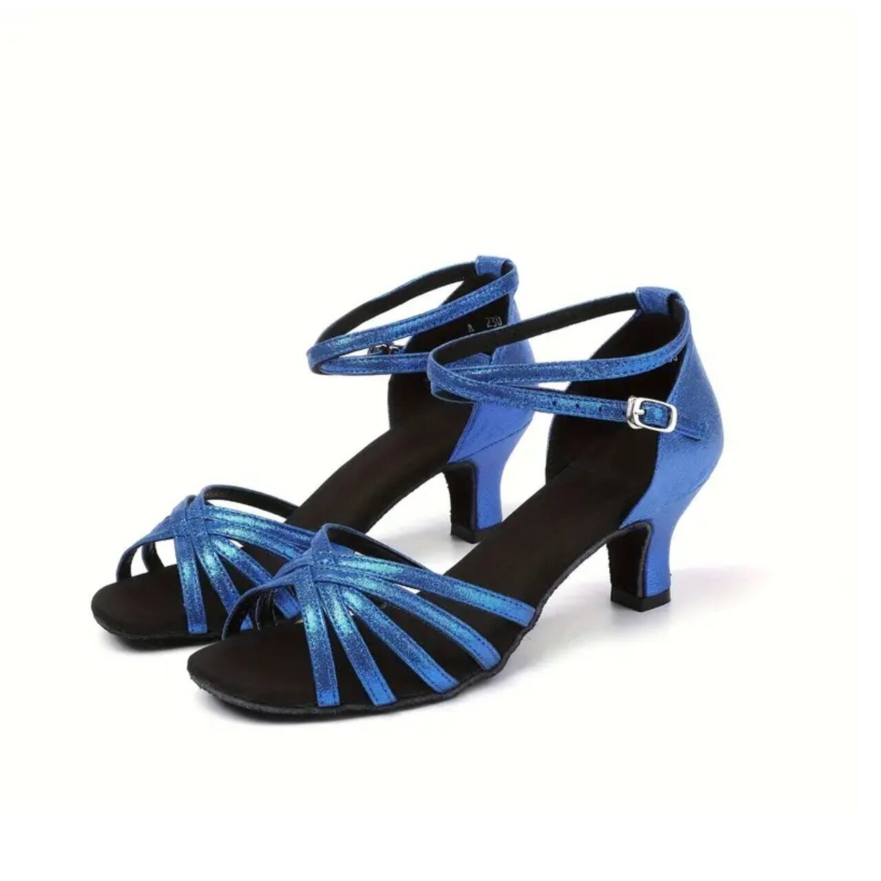 商品名:レディース サルサ ラテン ダンスシューズ ブルー ミドルヒール [LH106BL]